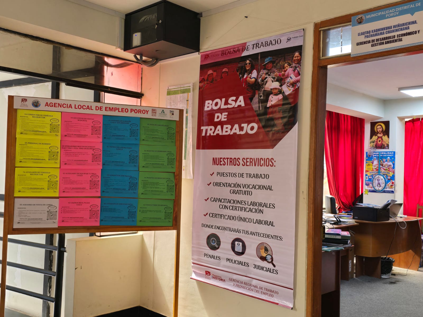 El distrito de Poroy cuenta desde el 3 de diciembre con una nueva Agencia Local de Empleo, creada para fortalecer las oportunidades de inserción laboral de mujeres y jóvenes. Esta iniciativa forma parte del proyecto “Autonomía Económica para Mujeres y Jóvenes”, financiado por la Agencia Andaluza de Cooperación Internacional para el Desarrollo y la Fundación.